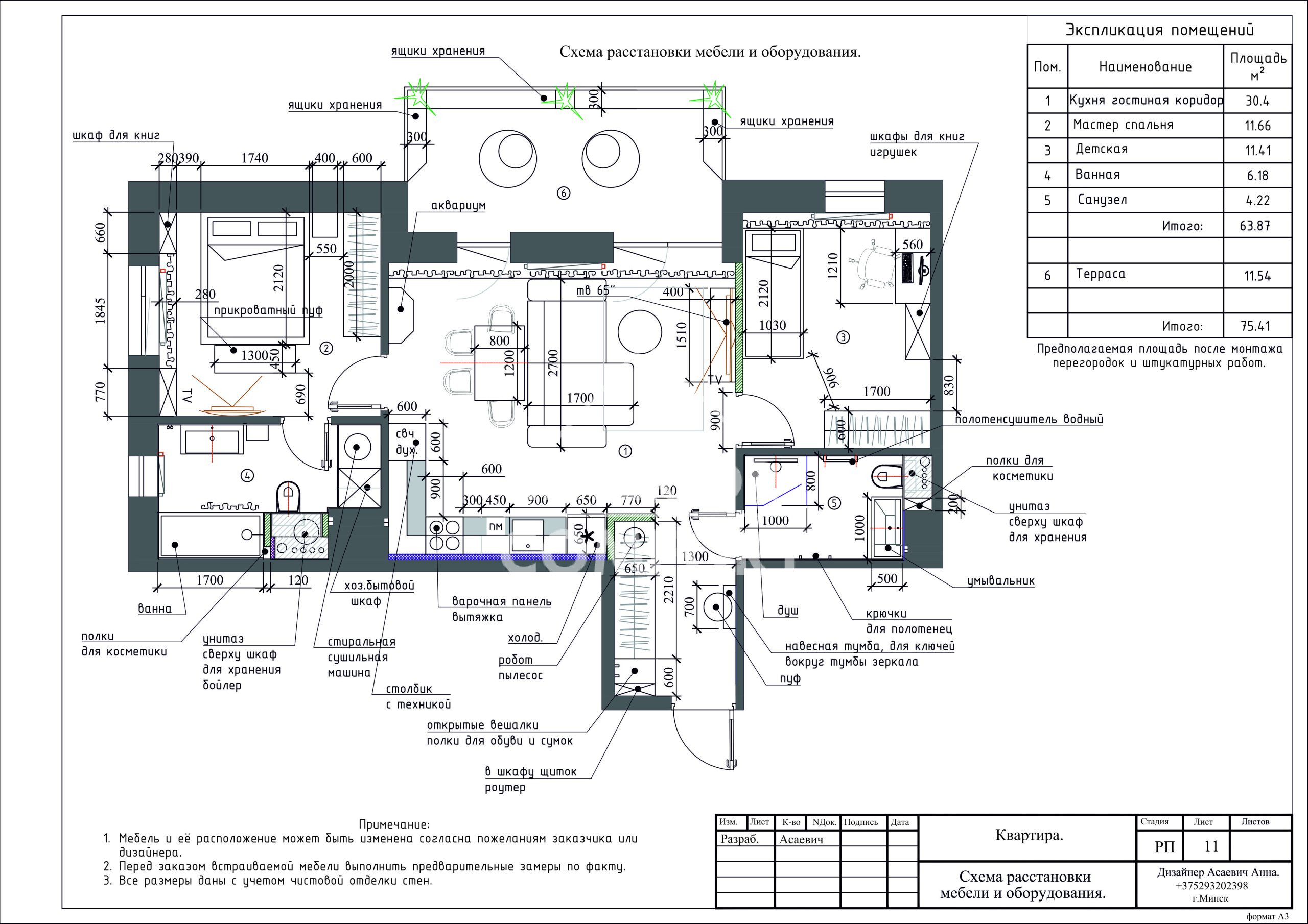 - чертежи по мебели индивидуального изготовления с названиями цветов мебели и элементов,